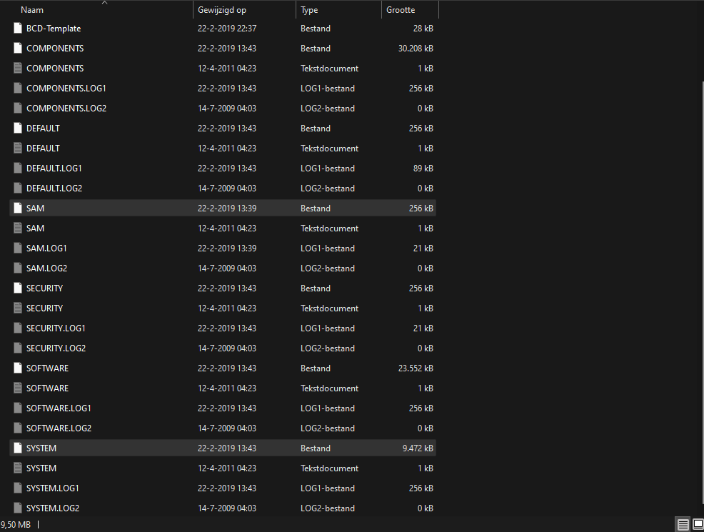 Coming across or finding a .vhd or Virtual Hard Disk file its also possible to find the registry files, these files are locked on a running system but not when its mounted.